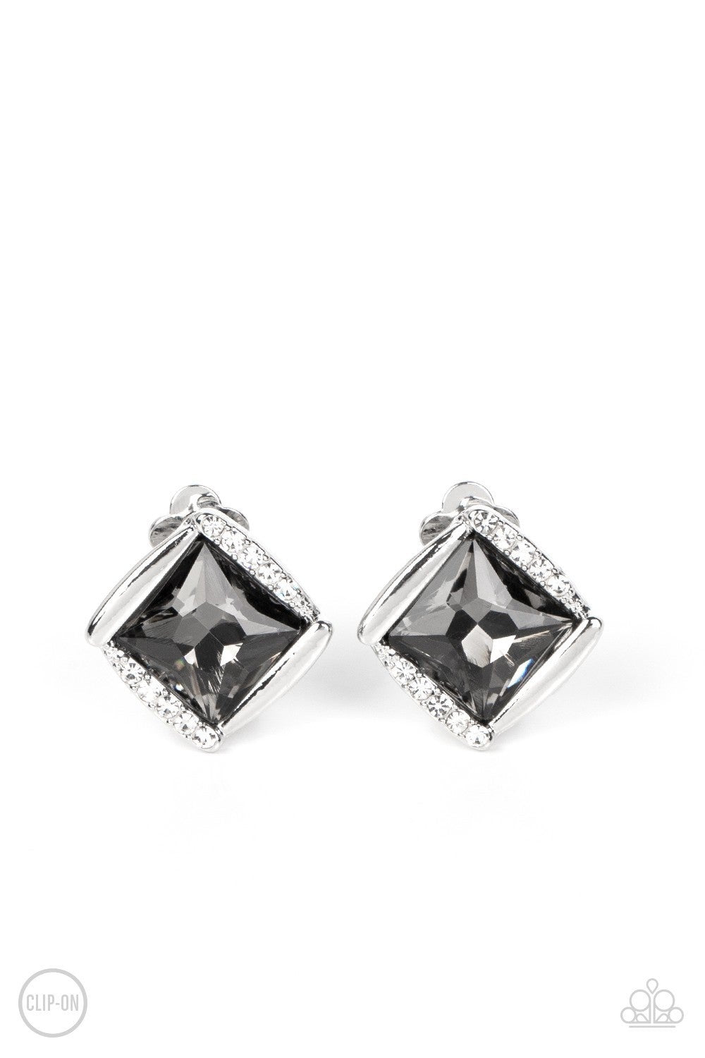 Sparkle Squared - Silver - Hematite Gem Paparazzi Clip-On Earrings