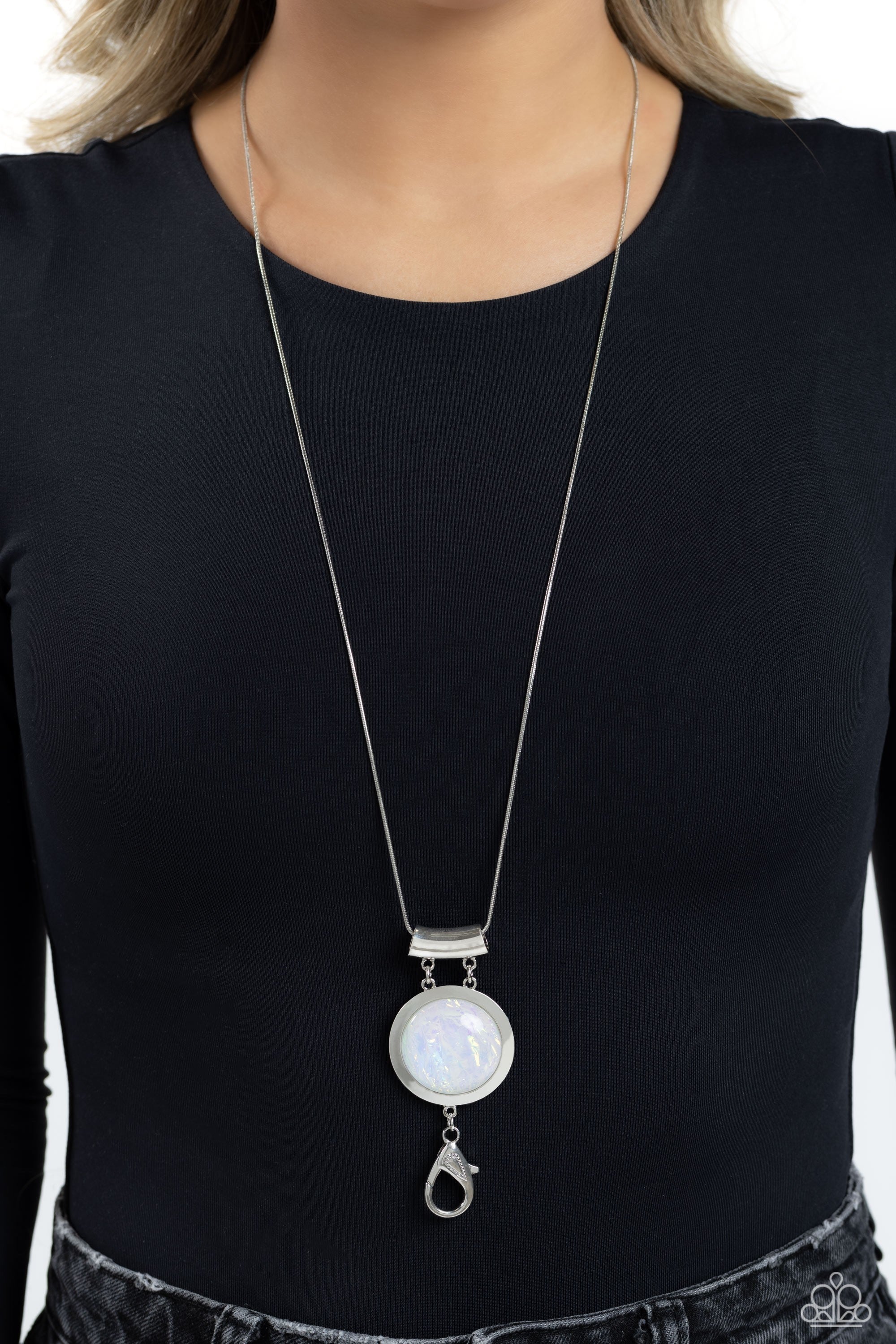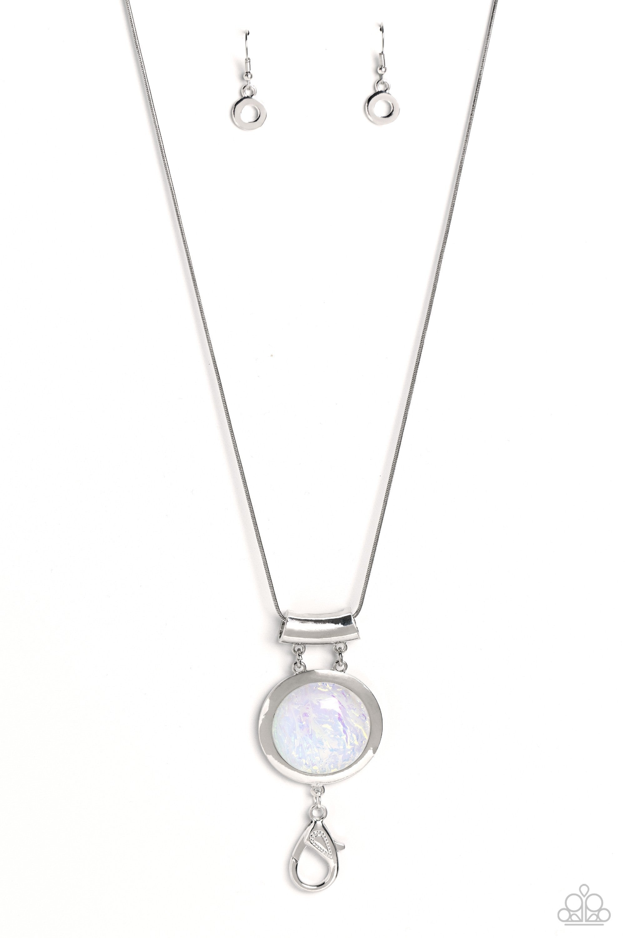 Starlight Starbright - White - Glassy Opalescent Oversized Gem Paparazzi Lanyard Necklace