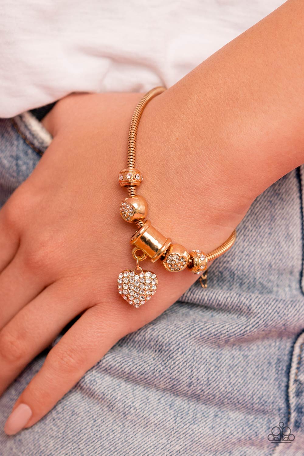 Suitor Sequence - Gold - White Rhinestone Heart Paparazzi Lobster Claw Bracelet - Selfie September 2023 Exclusive