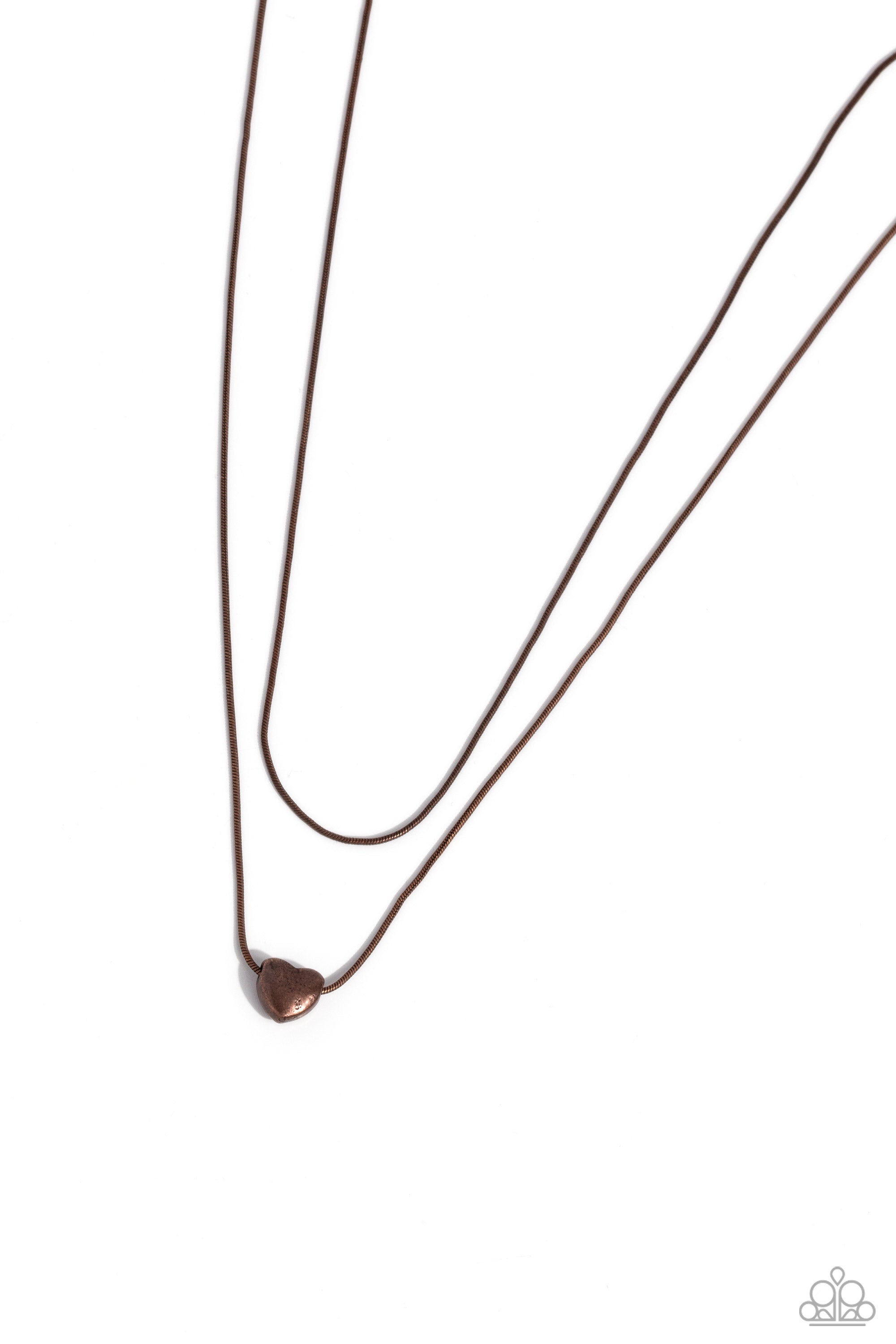 Infused with a dainty copper snake chain, a sleek copper heart charm glides along an additional copper snake chain, creating a stunning layered look. Features an adjustable clasp closure.