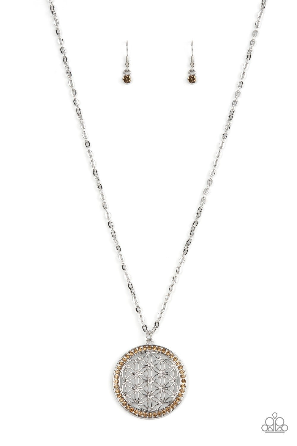 Tearoom Twinkle - Brown - Rhinestone Floral Pendant Paparazzi Necklace