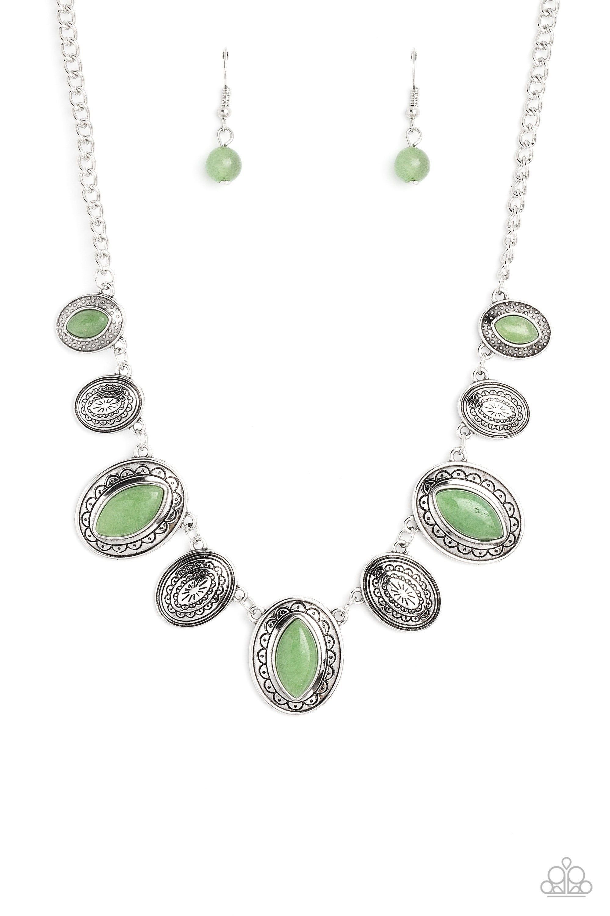 Textured Trailblazer - Green - Oval Jade Stone Paparazzi Short Necklace