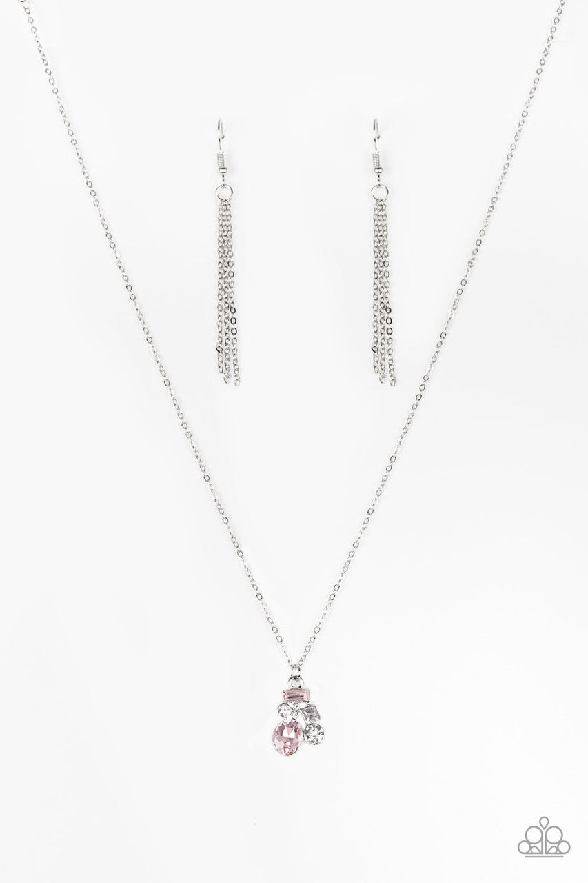 Varying in shape and size, glittery pink and white rhinestones coalesce into a sparkling pendant below the collar for a timeless look. Features an adjustable clasp closure.