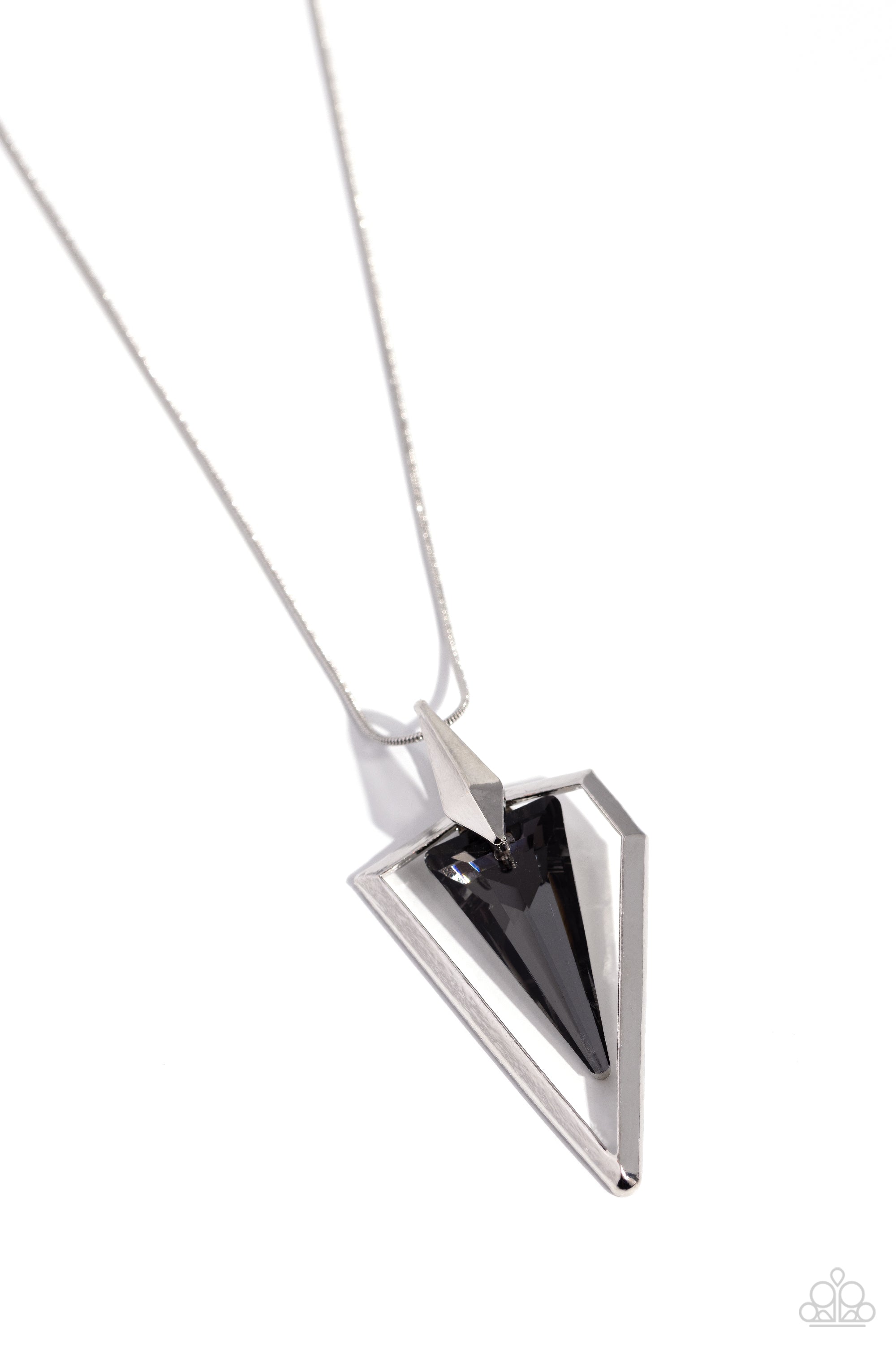 Trifecta Tyrant - Silver - Faceted Triangle Gem Paparazzi Long Necklace